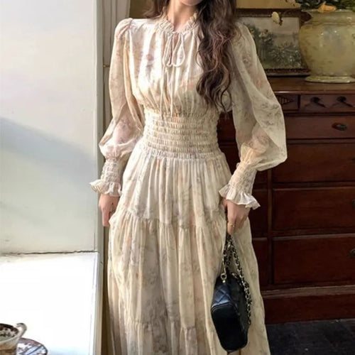 花柄フレンチ袖ロングカジュアルデートワンピースマキシワンピース