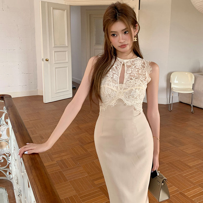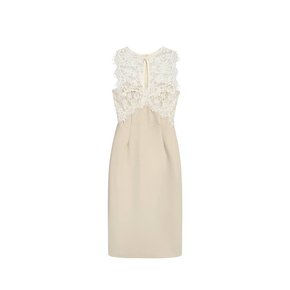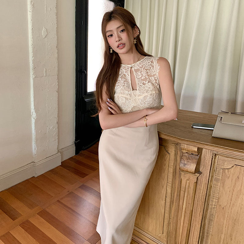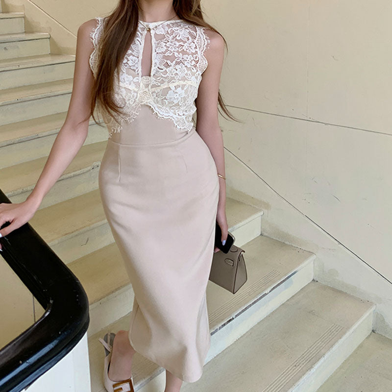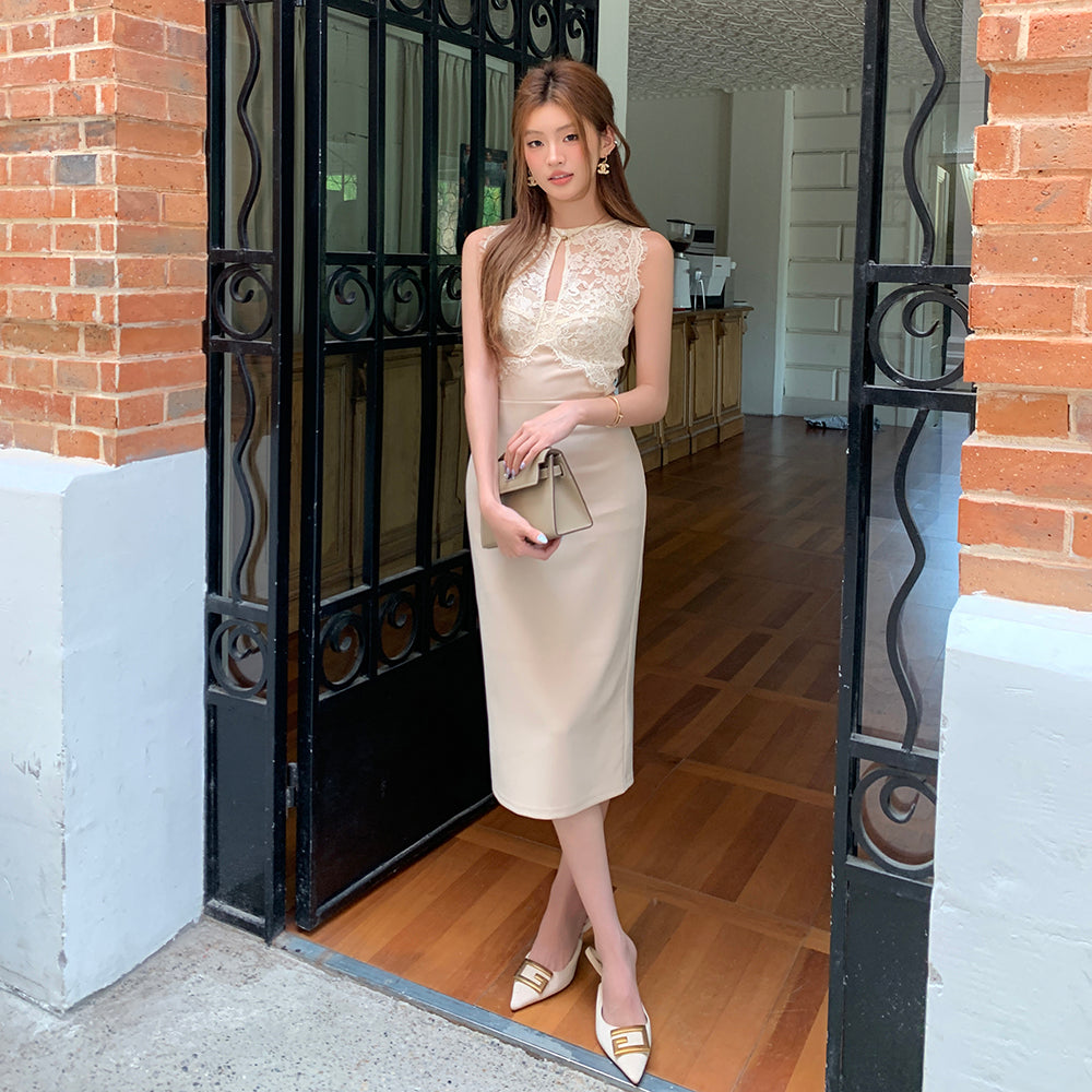 レースタイトミディワンピース レディース ノースリーブ きれいめ 着痩せ 結婚式 パーティー