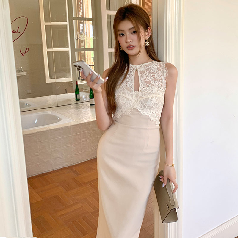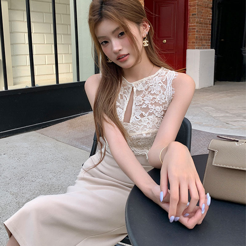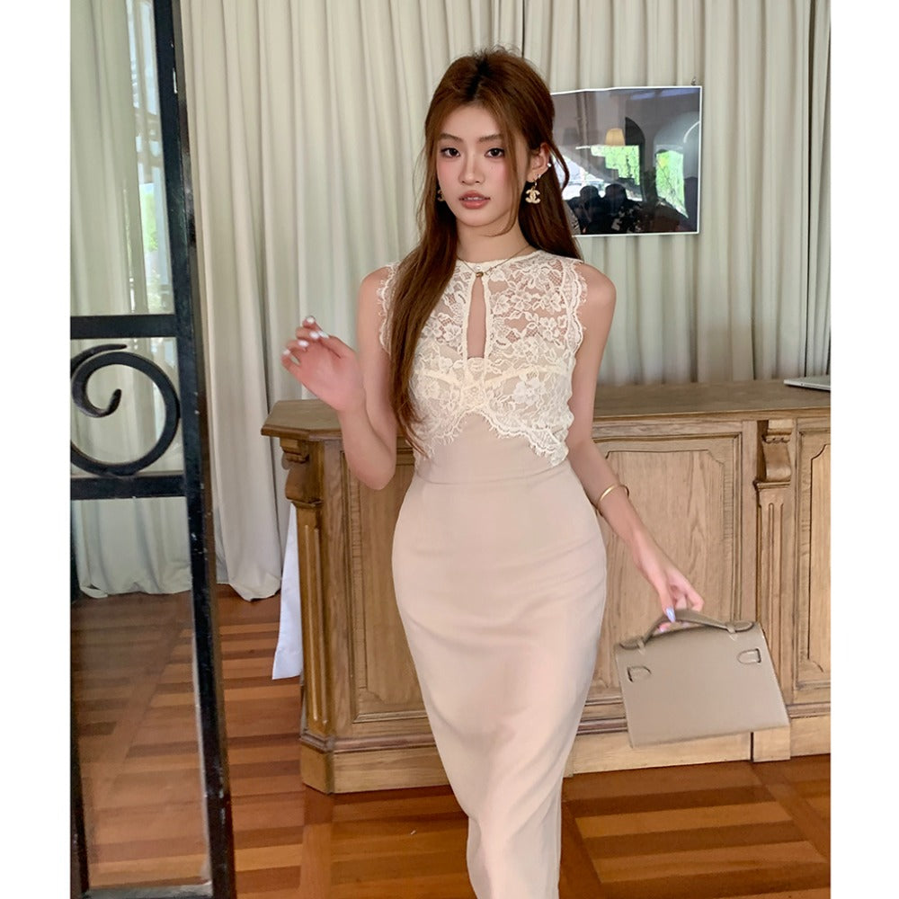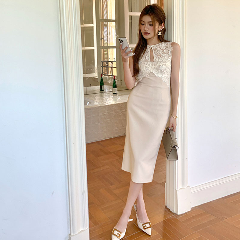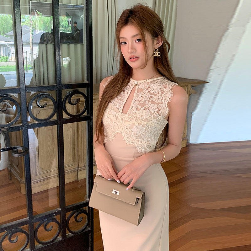 レースタイトミディワンピース レディース ノースリーブ きれいめ 着痩せ 結婚式 パーティー