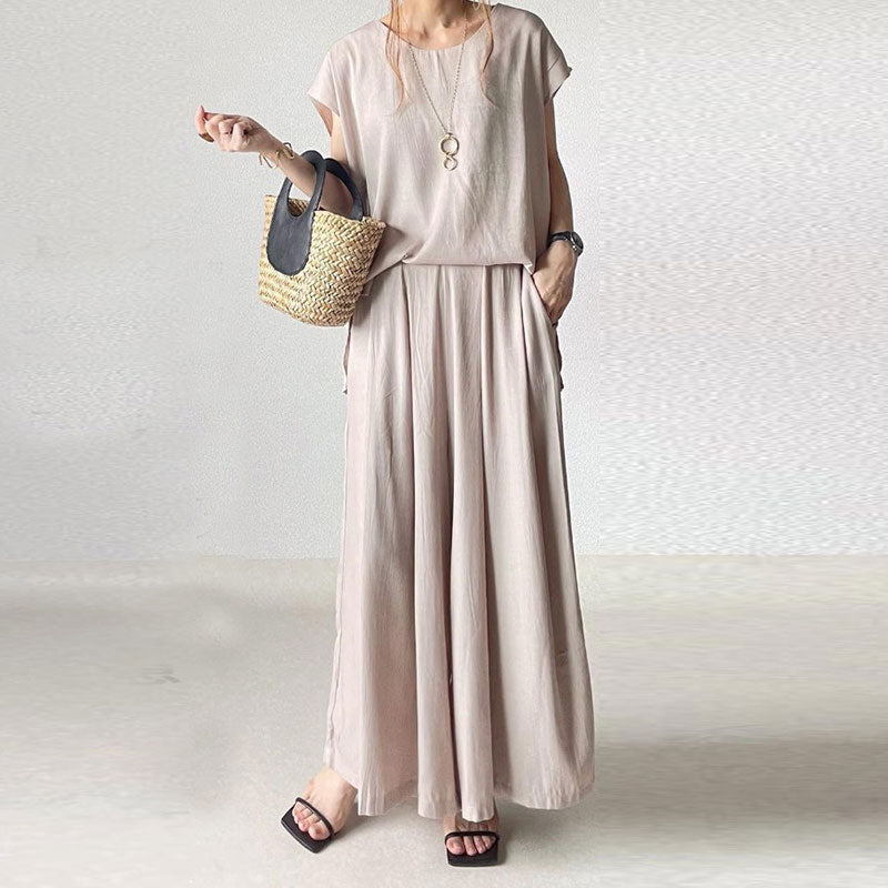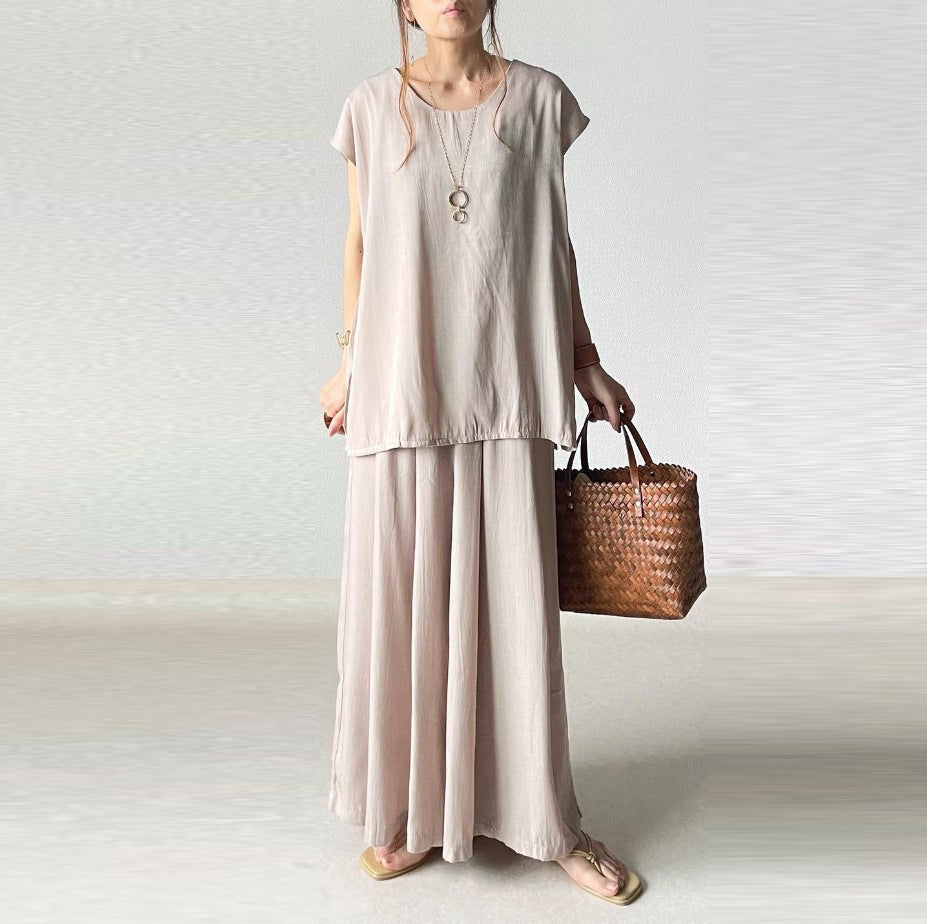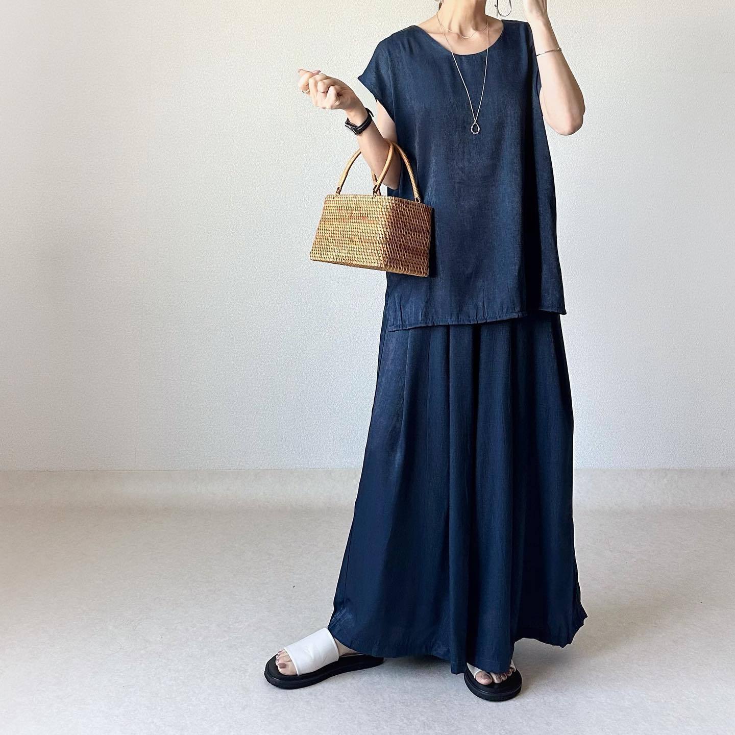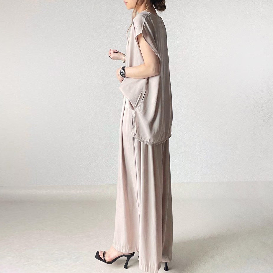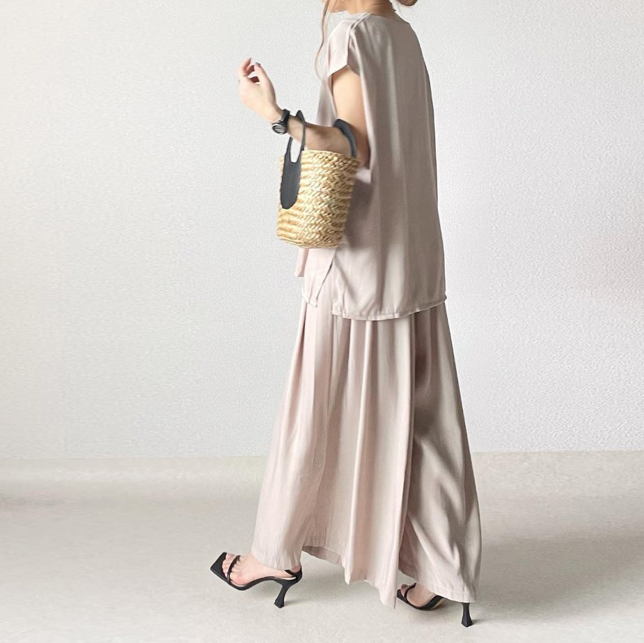フレンチ袖トップス&カジュアルパンツセットアップ