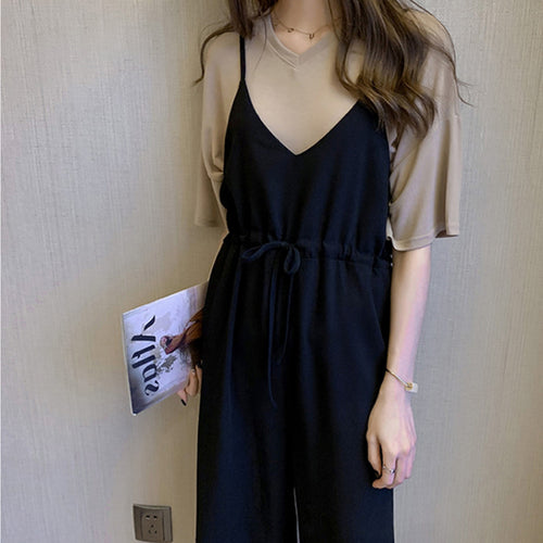 無地シンプルTシャツ&オールインワンサロペットセットアップ