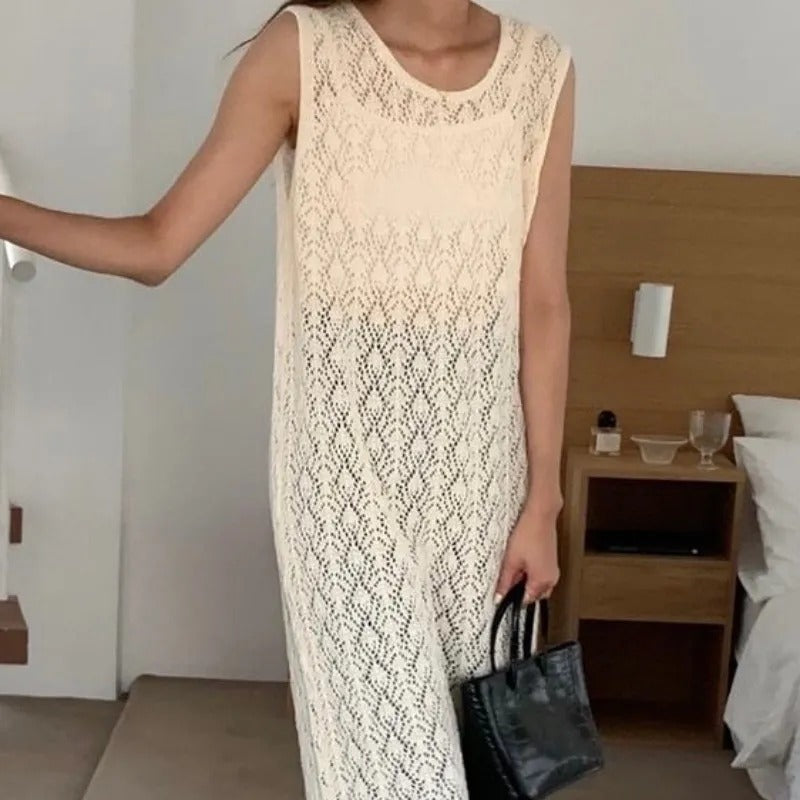 ダブルレース透かし彫りワンピースカジュアルワンピース