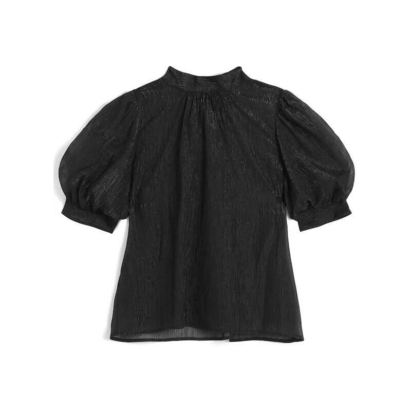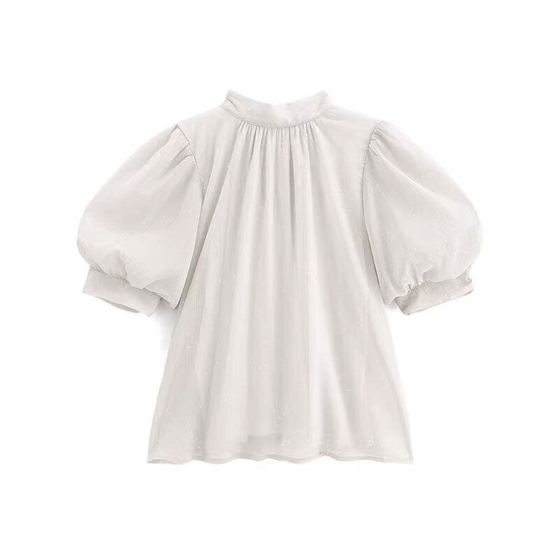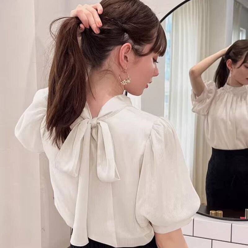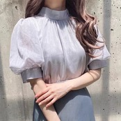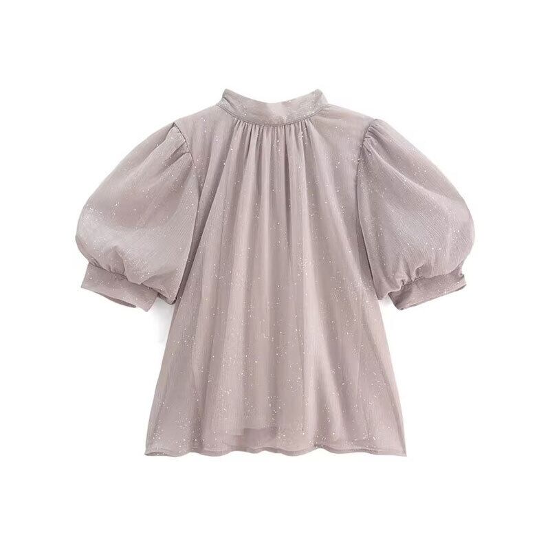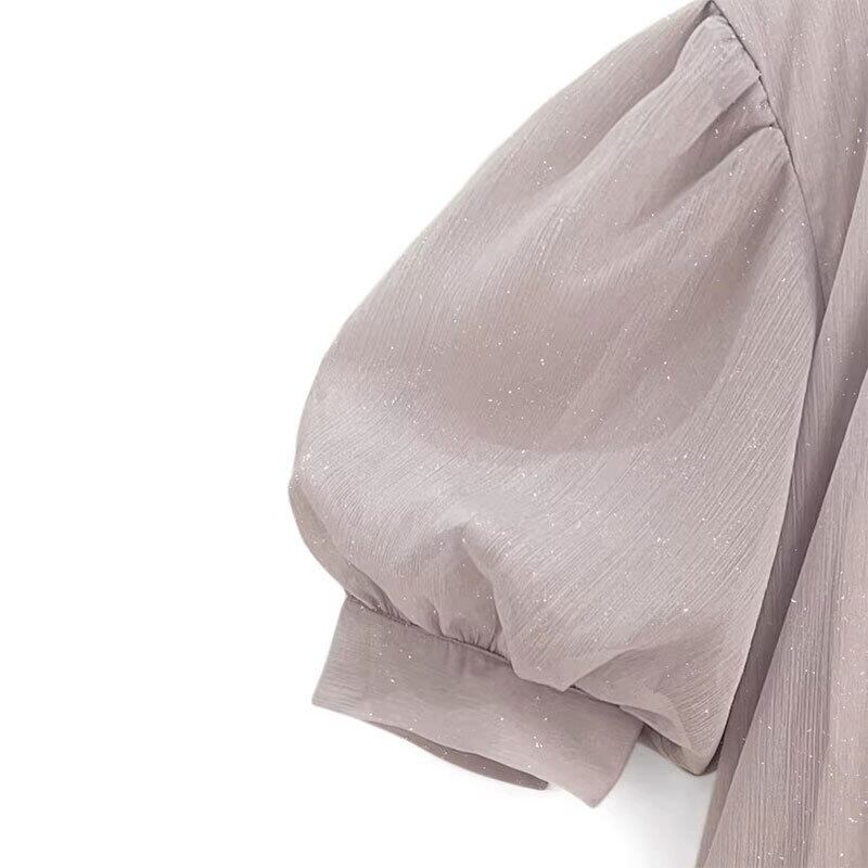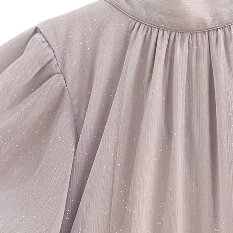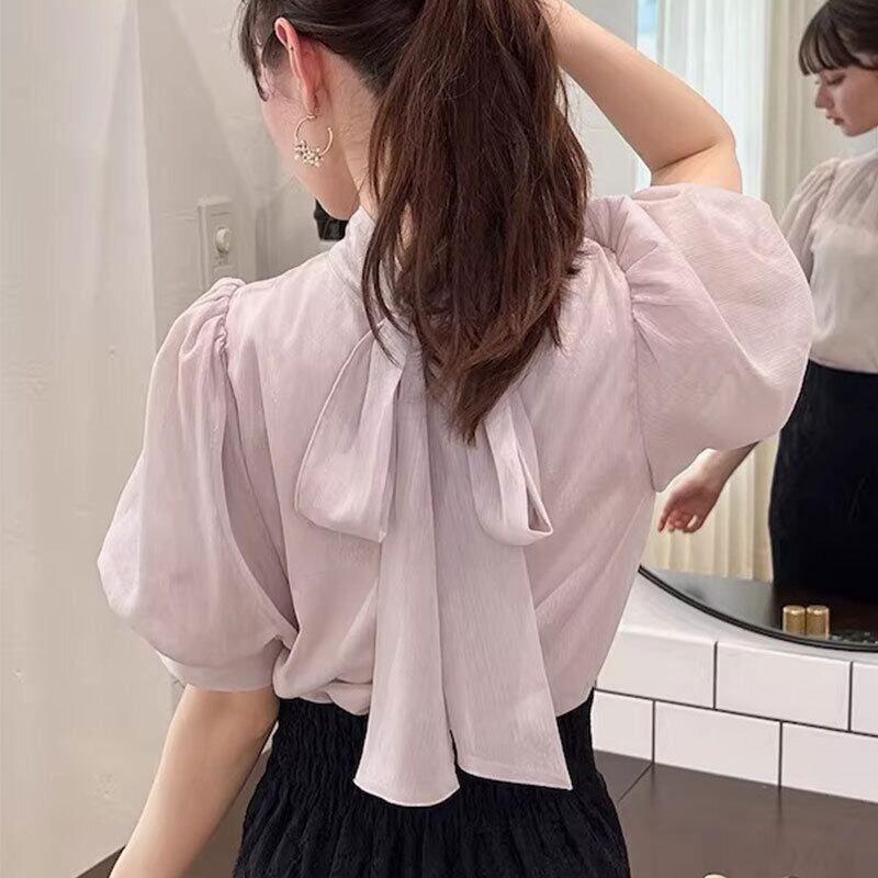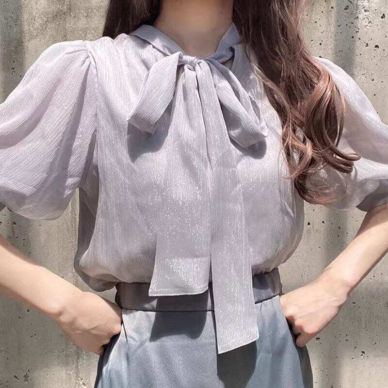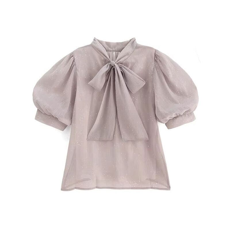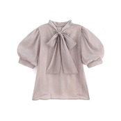春~夏 バルーン袖 リボンブラウス 薄ラベンダー きらきら デート・お出かけ 【AR-5】