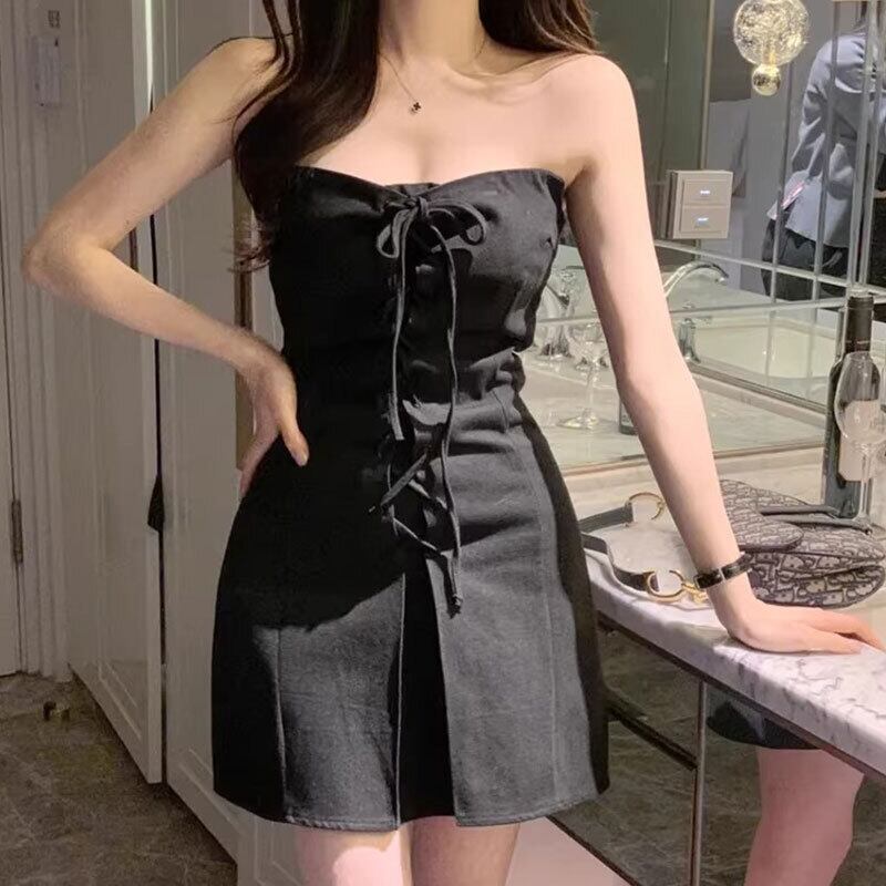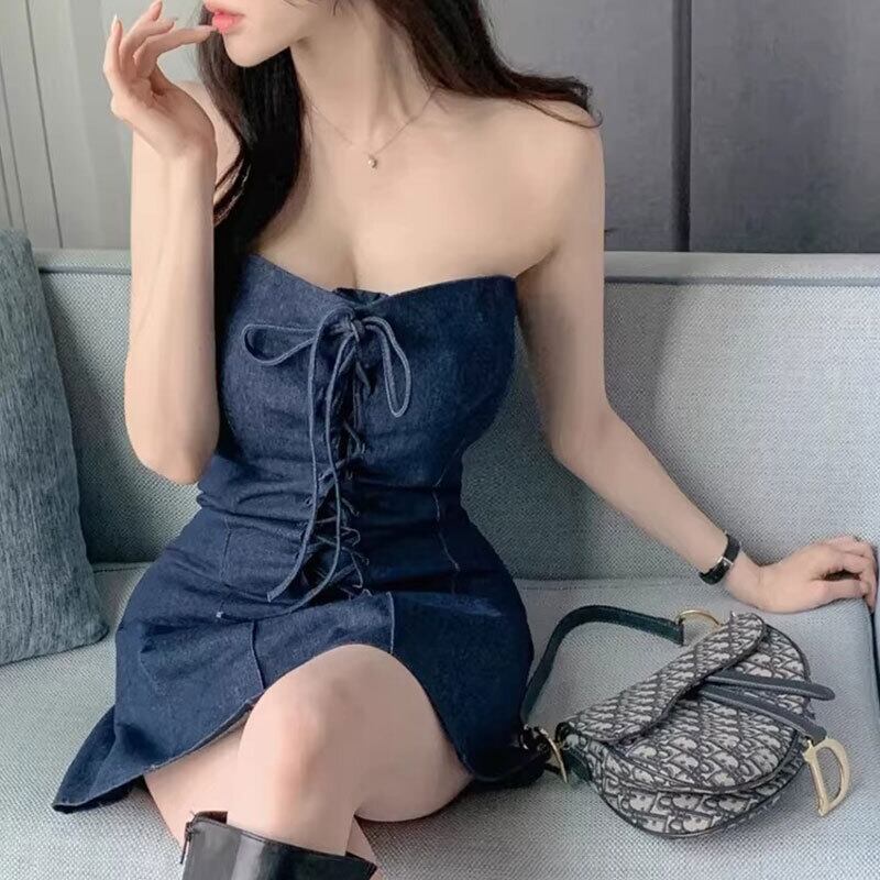 セクシーデニム風ストラップレスミニワンピース【AR-17】