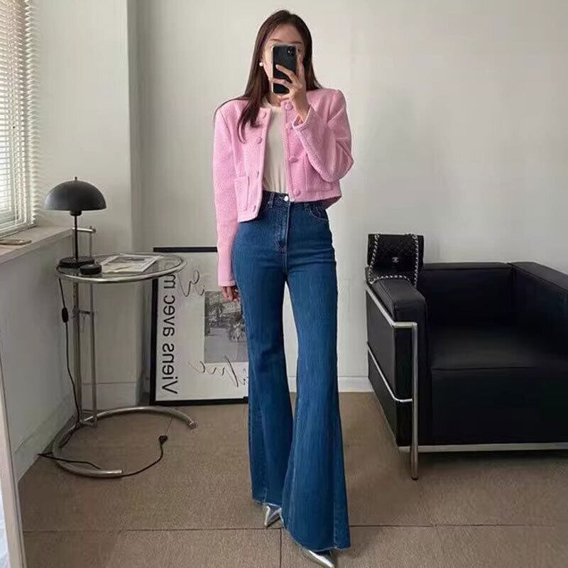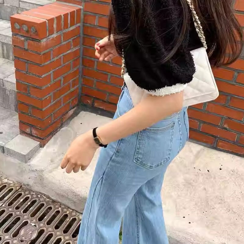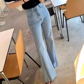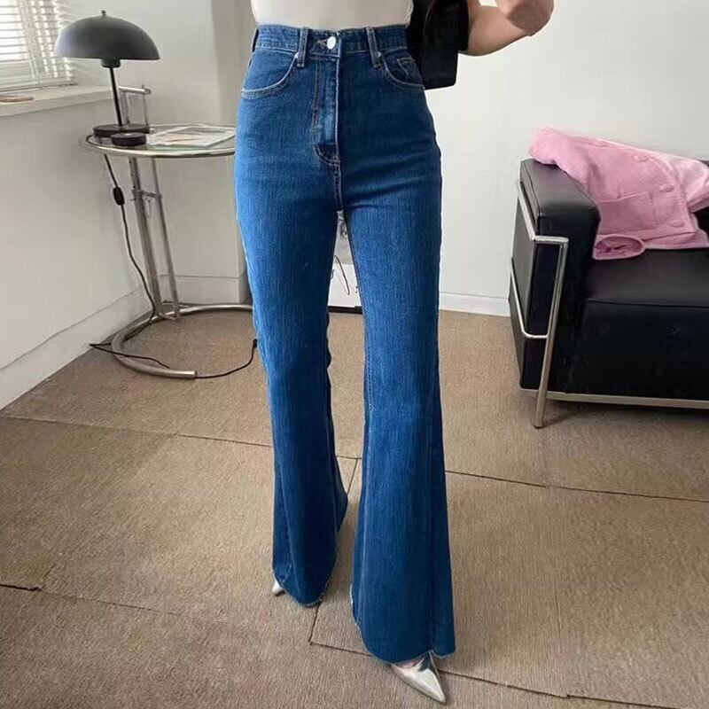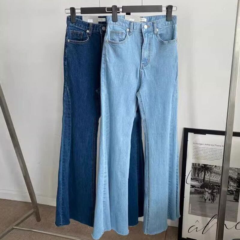 デニムマイクロフレアハイウエスト テクスチャード レトロジーンパンツ【AR-20】