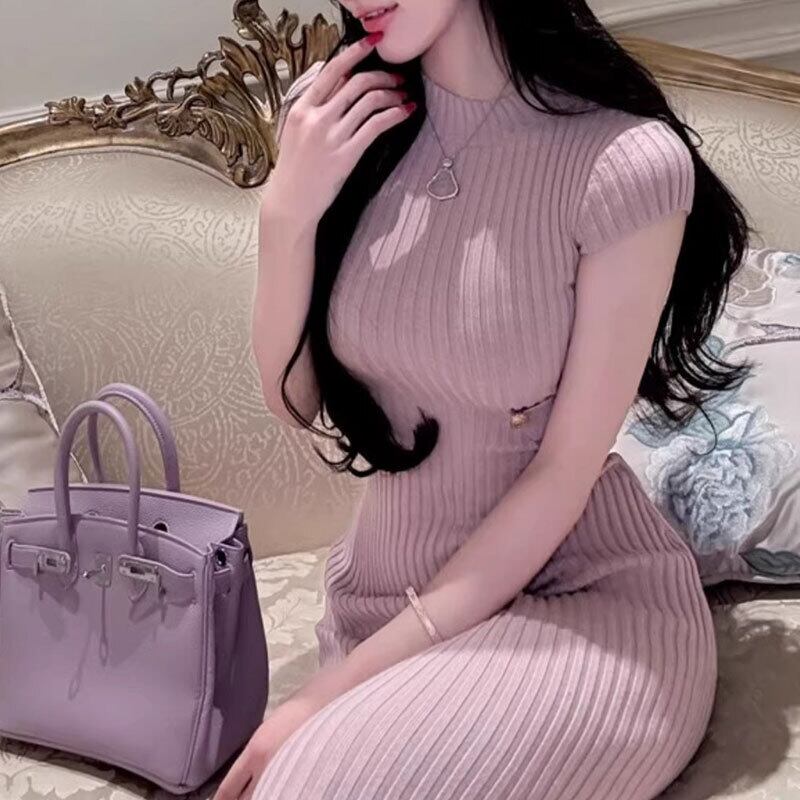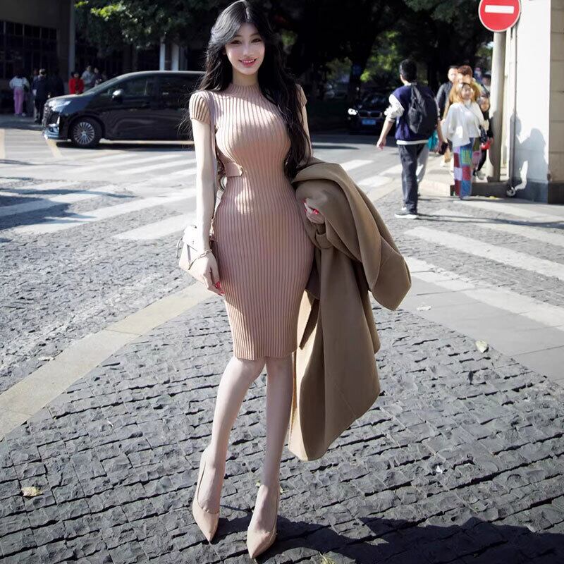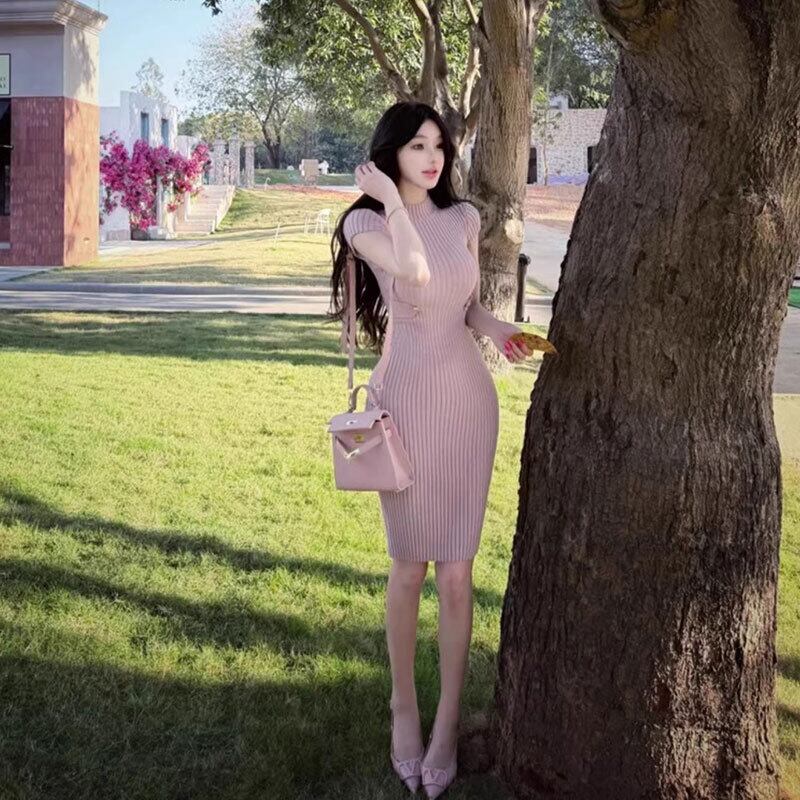 ニットワンピース 半袖 ボディコン サイドカットアウト デート 【AR-29】