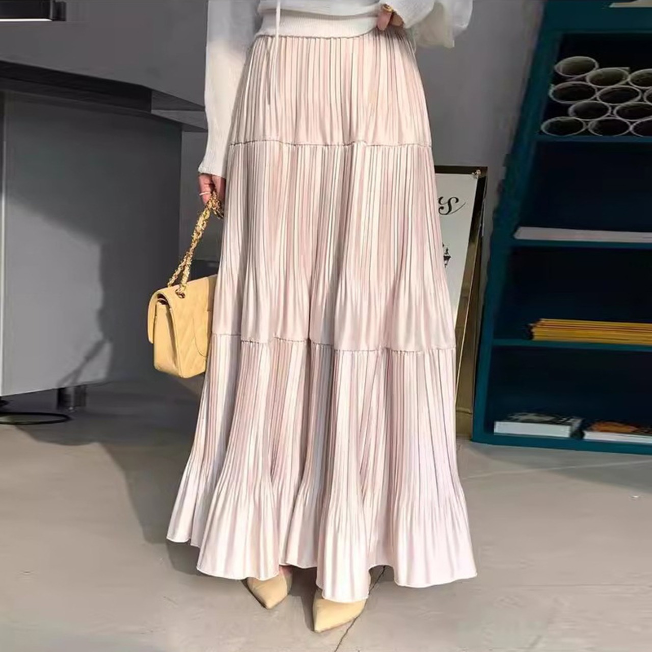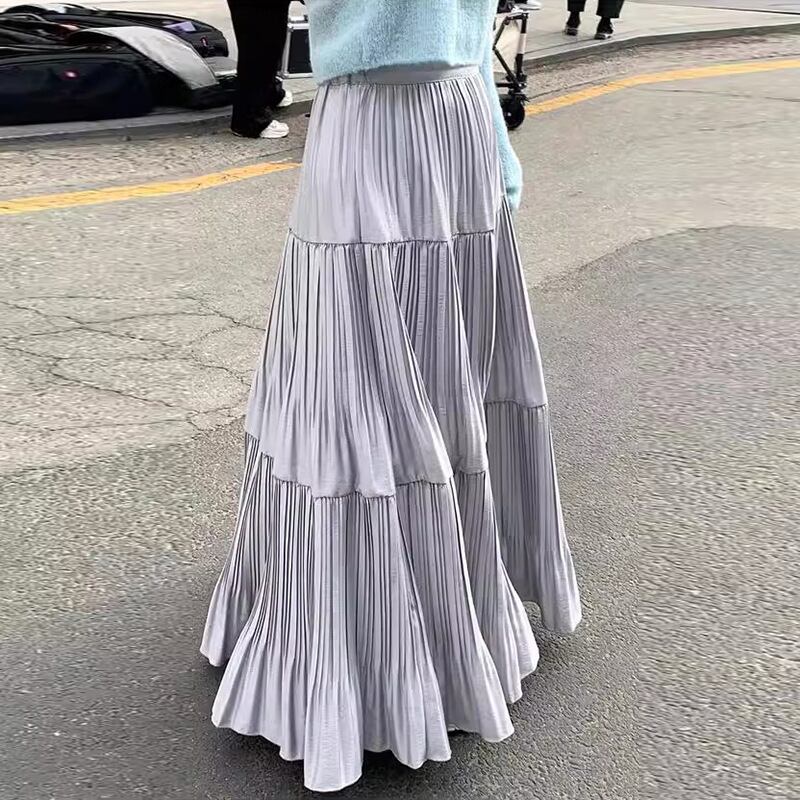 プリーツ ティアード スカート ハイウエスト ロングスカート エレガント【AR-58】