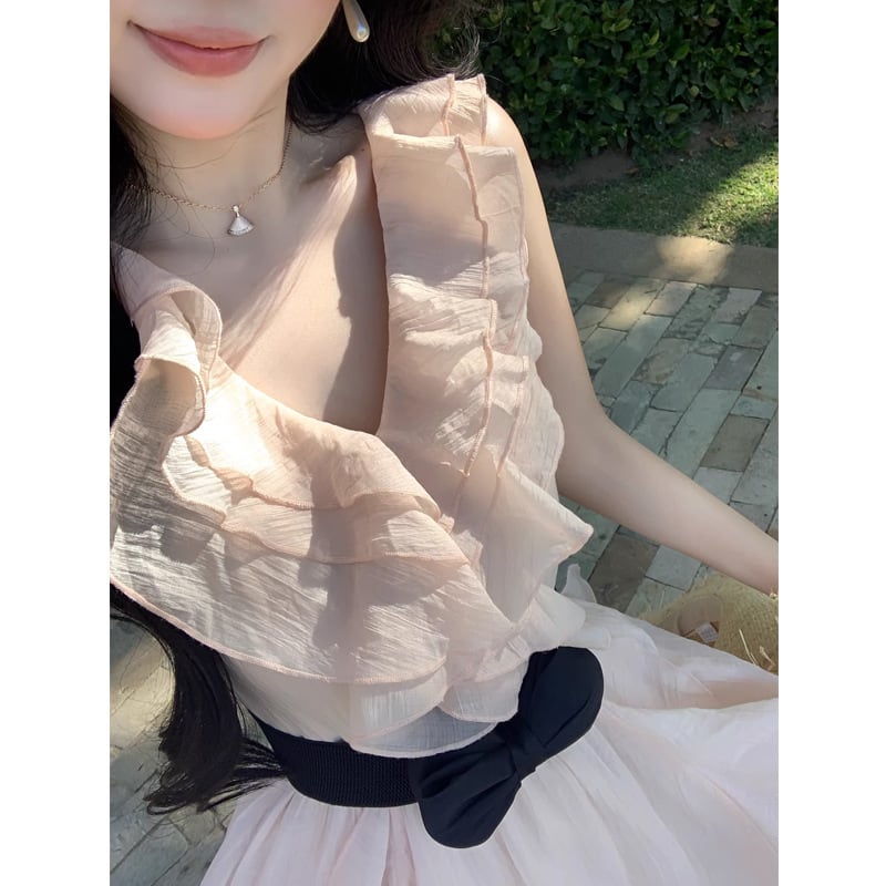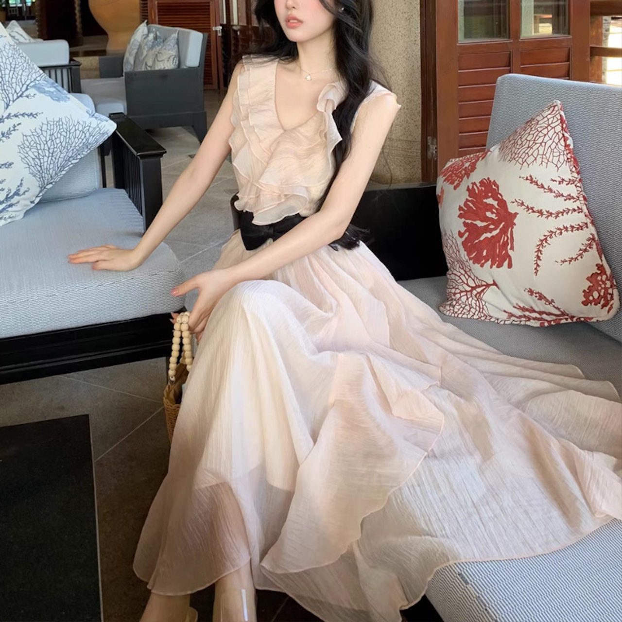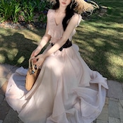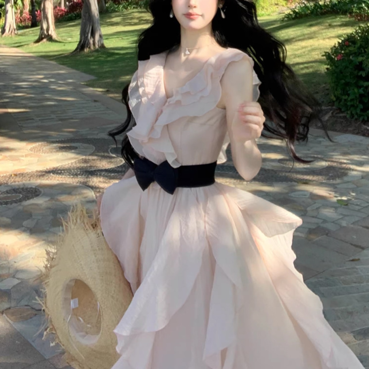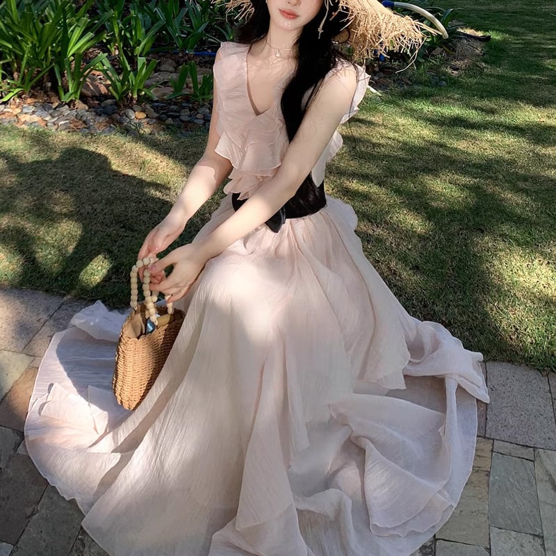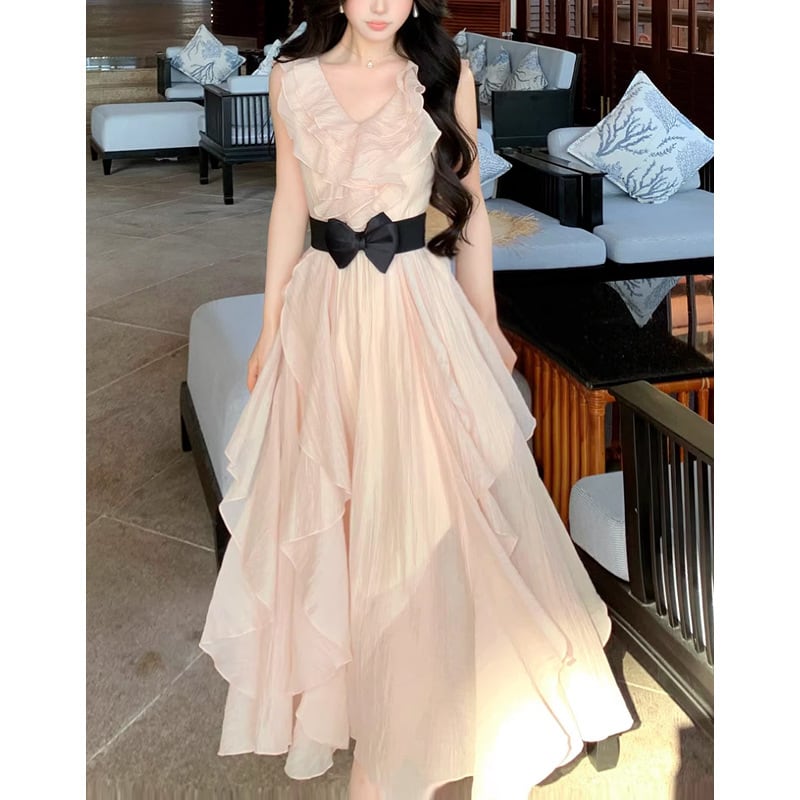 ピンクフリルワンピース ロング丈 リゾート / デートに最適【AR-37】