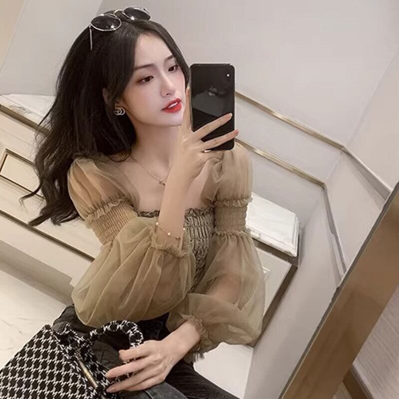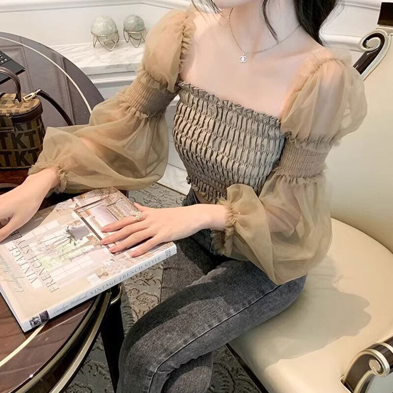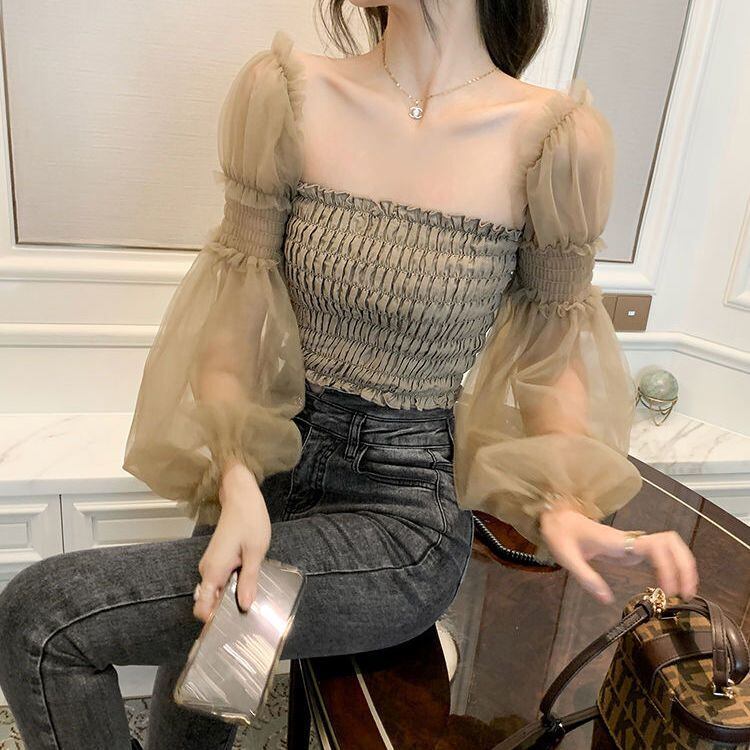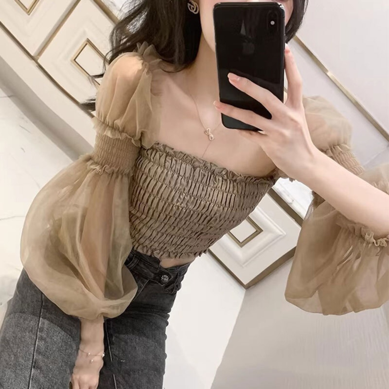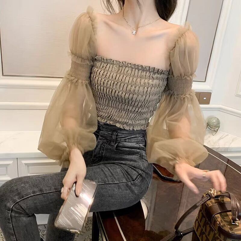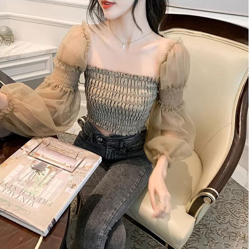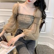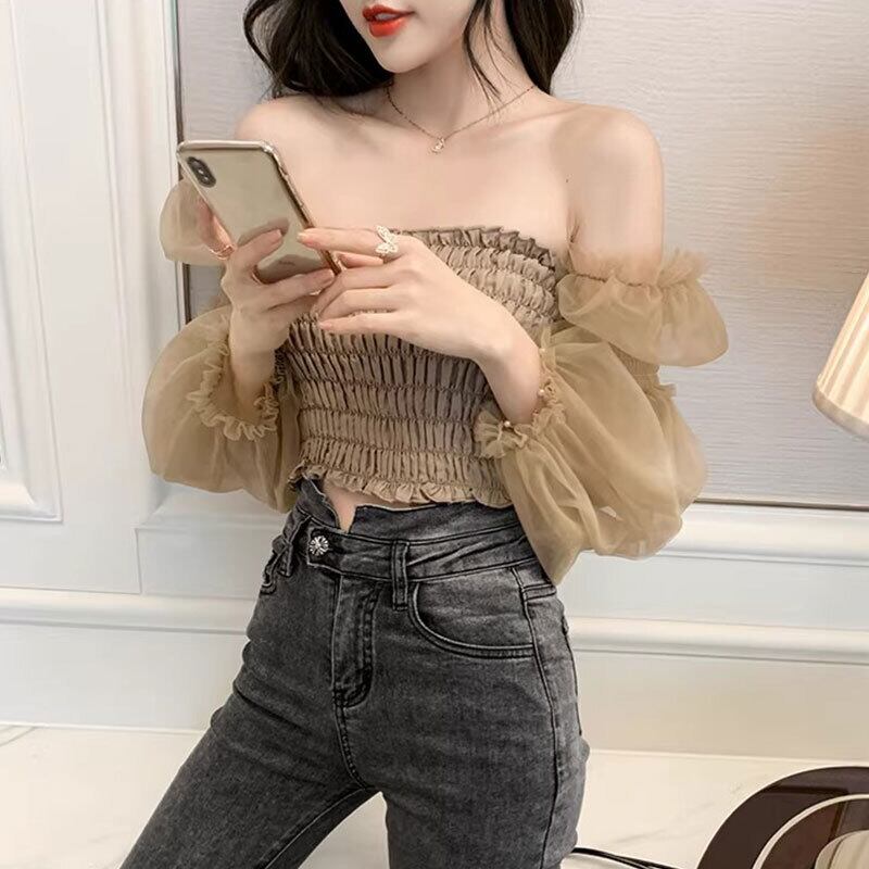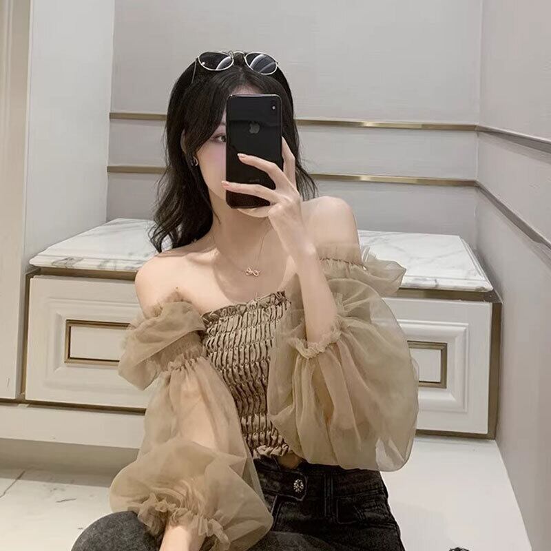 オフショルダーパフスリーブトップス シャーリング ガーリー【AR-41】