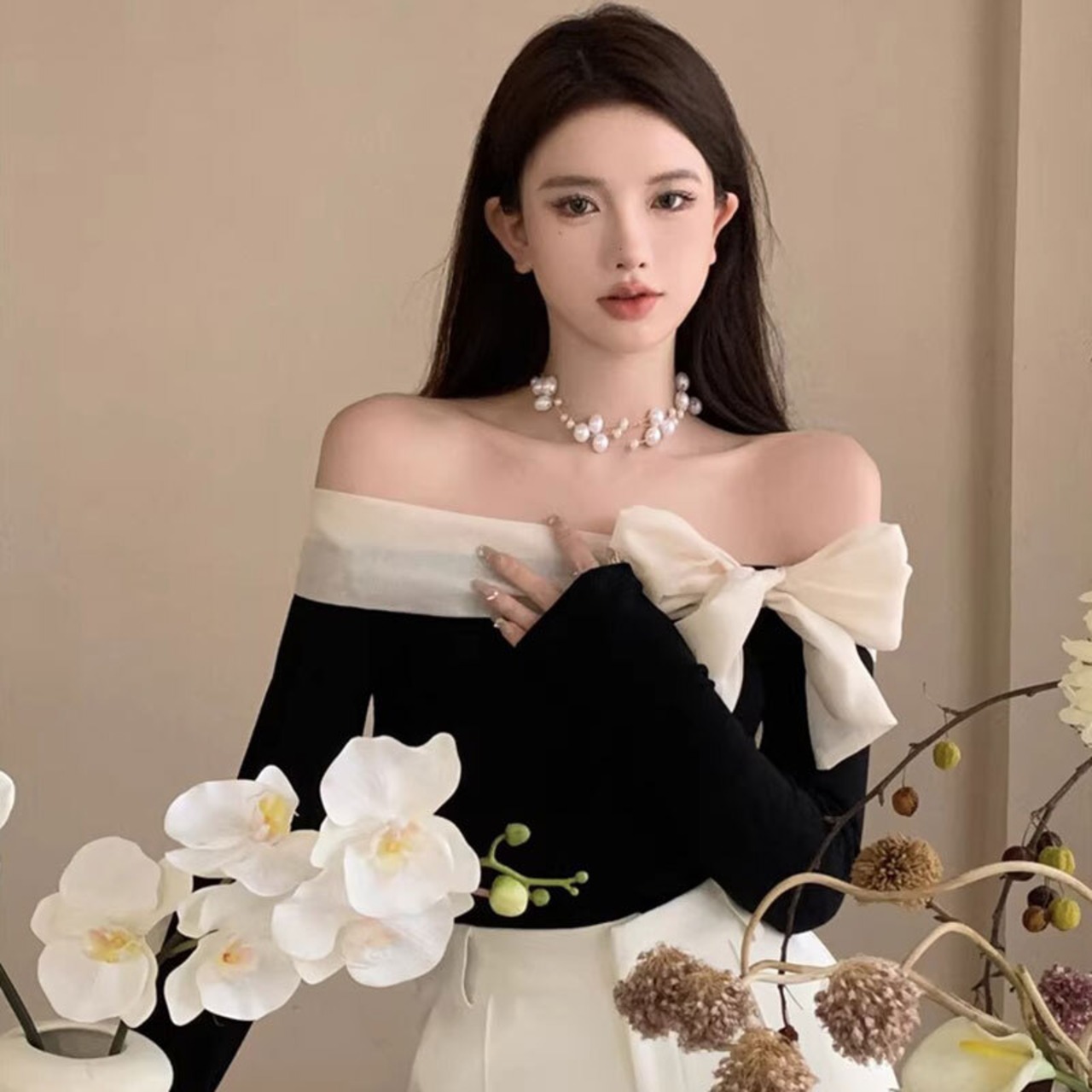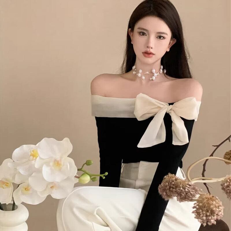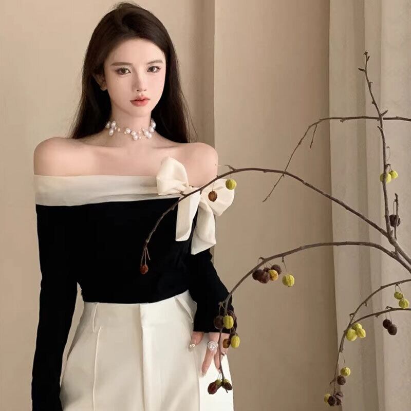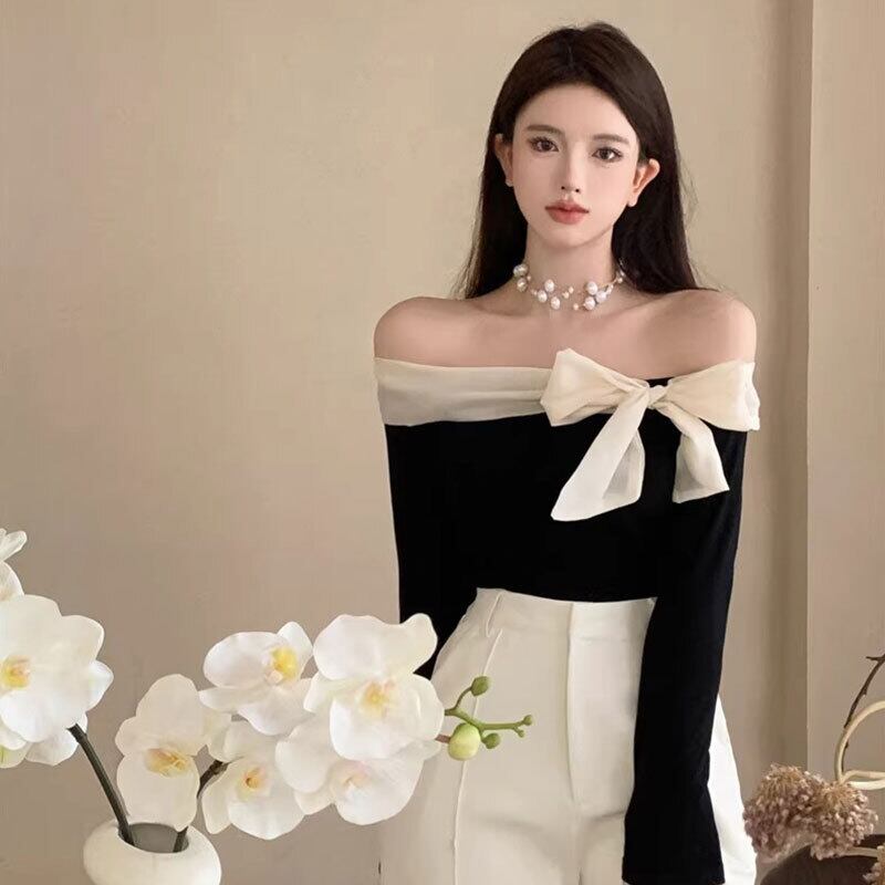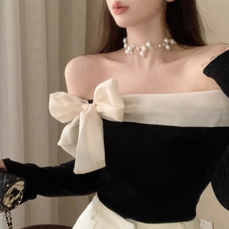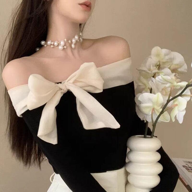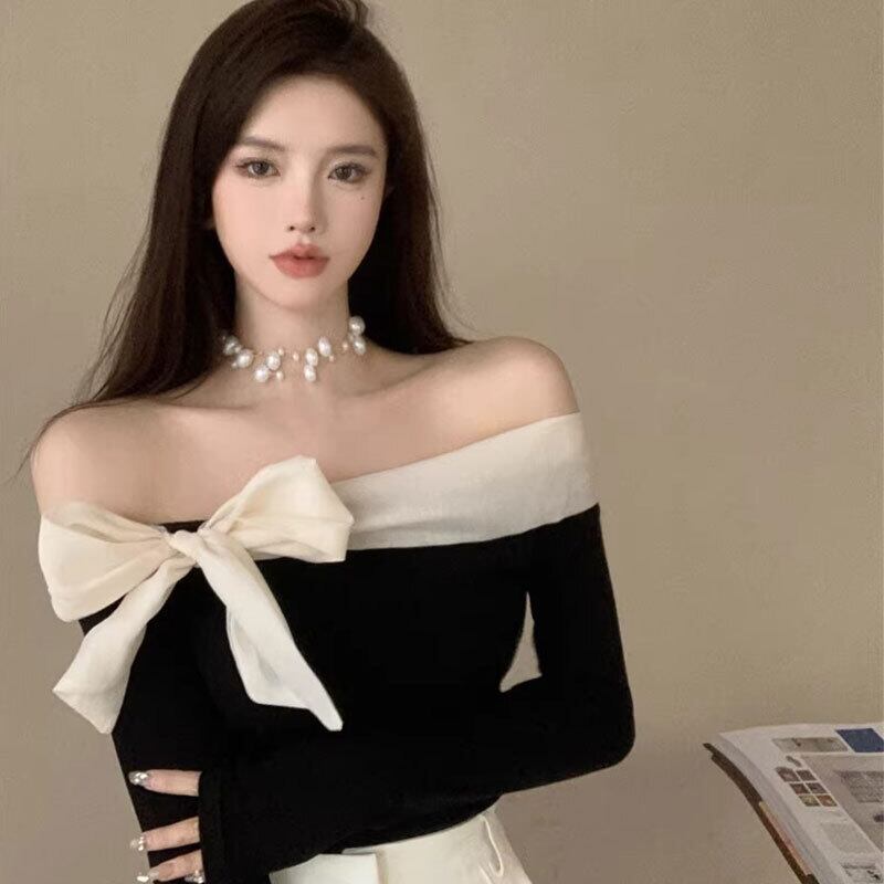 オフショルダーリボントップス バイカラー【AR-42】