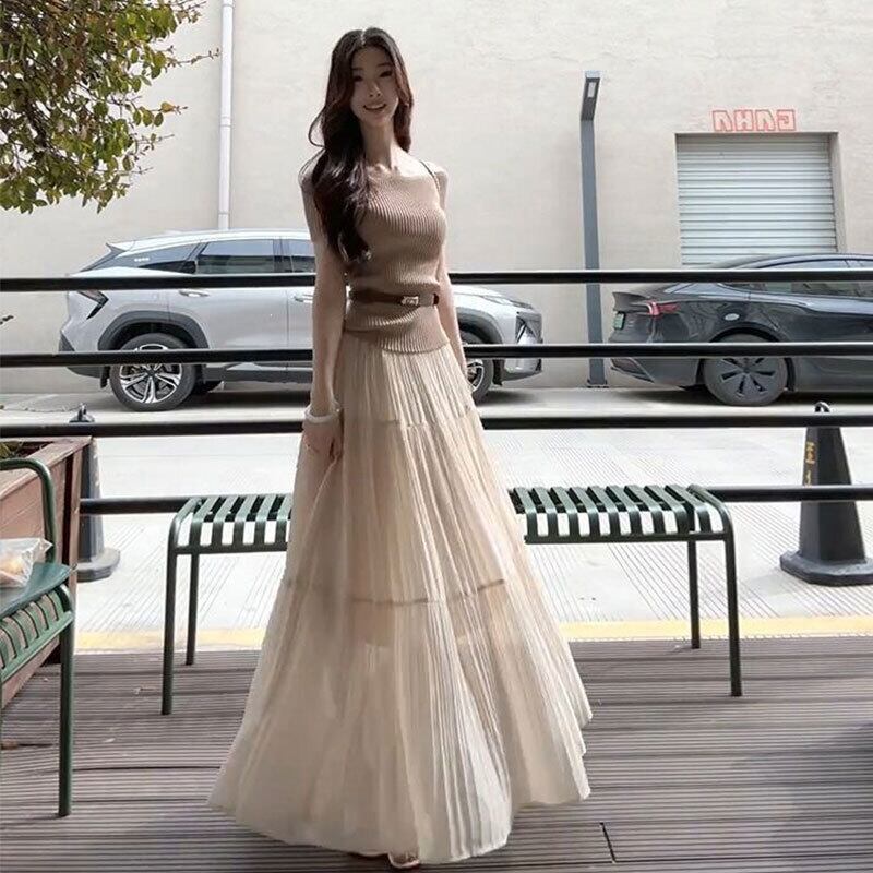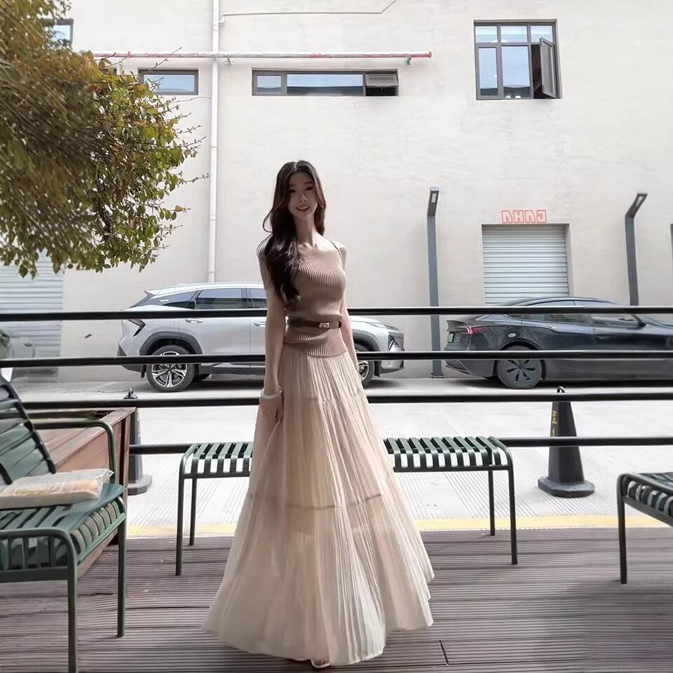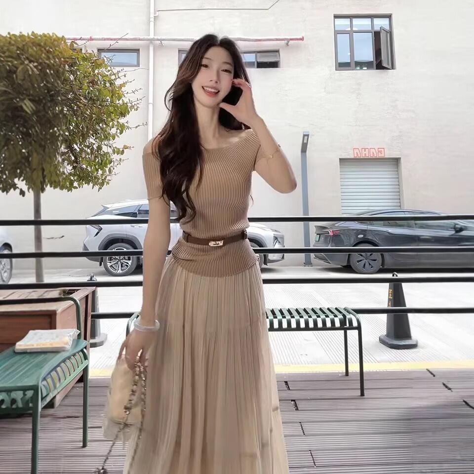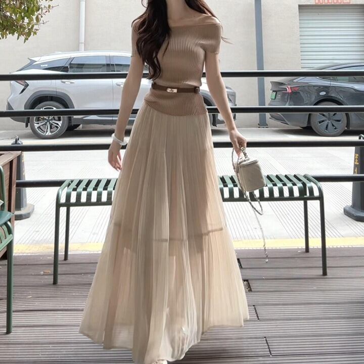 オフショルダー ニット ロングスカート セットアップ レディース ぺチハイ ウエストマーク きれいめ デート【AR-48】