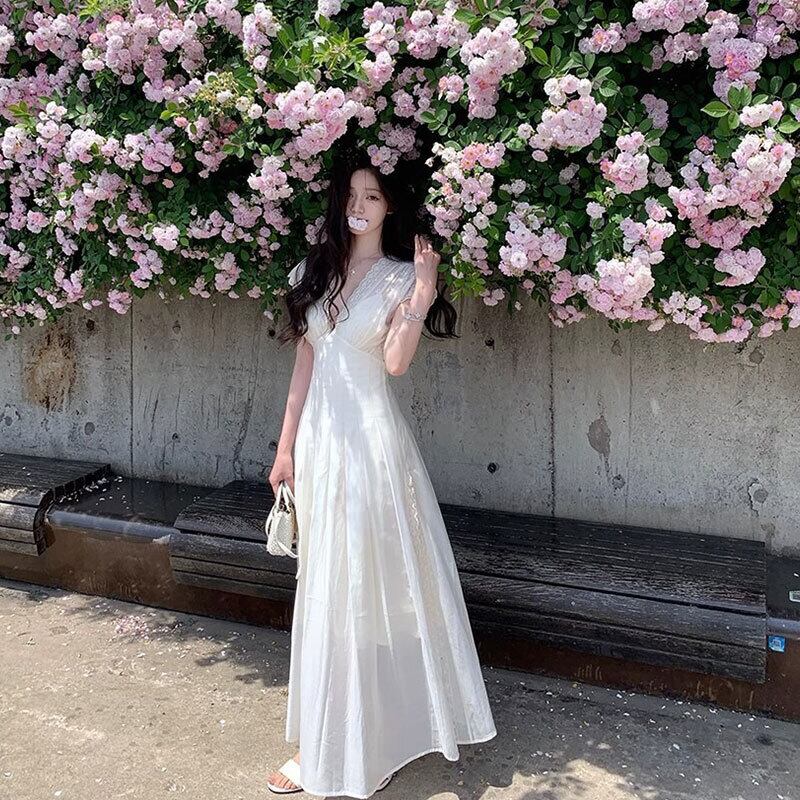 V ネックロングワンピース レディース ウエストマーク デート ガーデンウェディング 大人可愛いデートワンピース