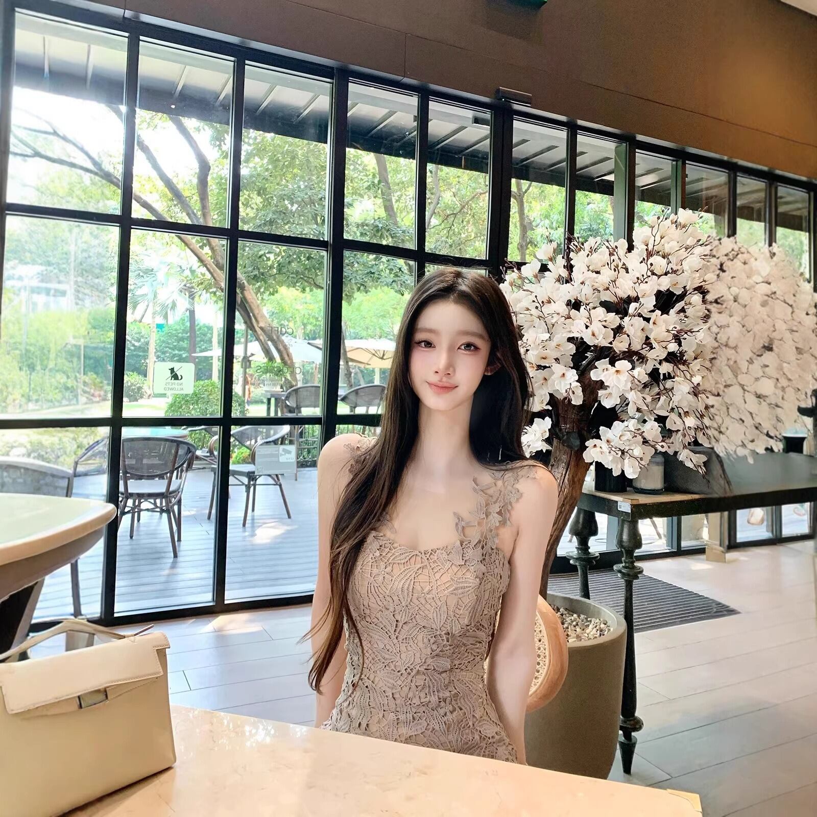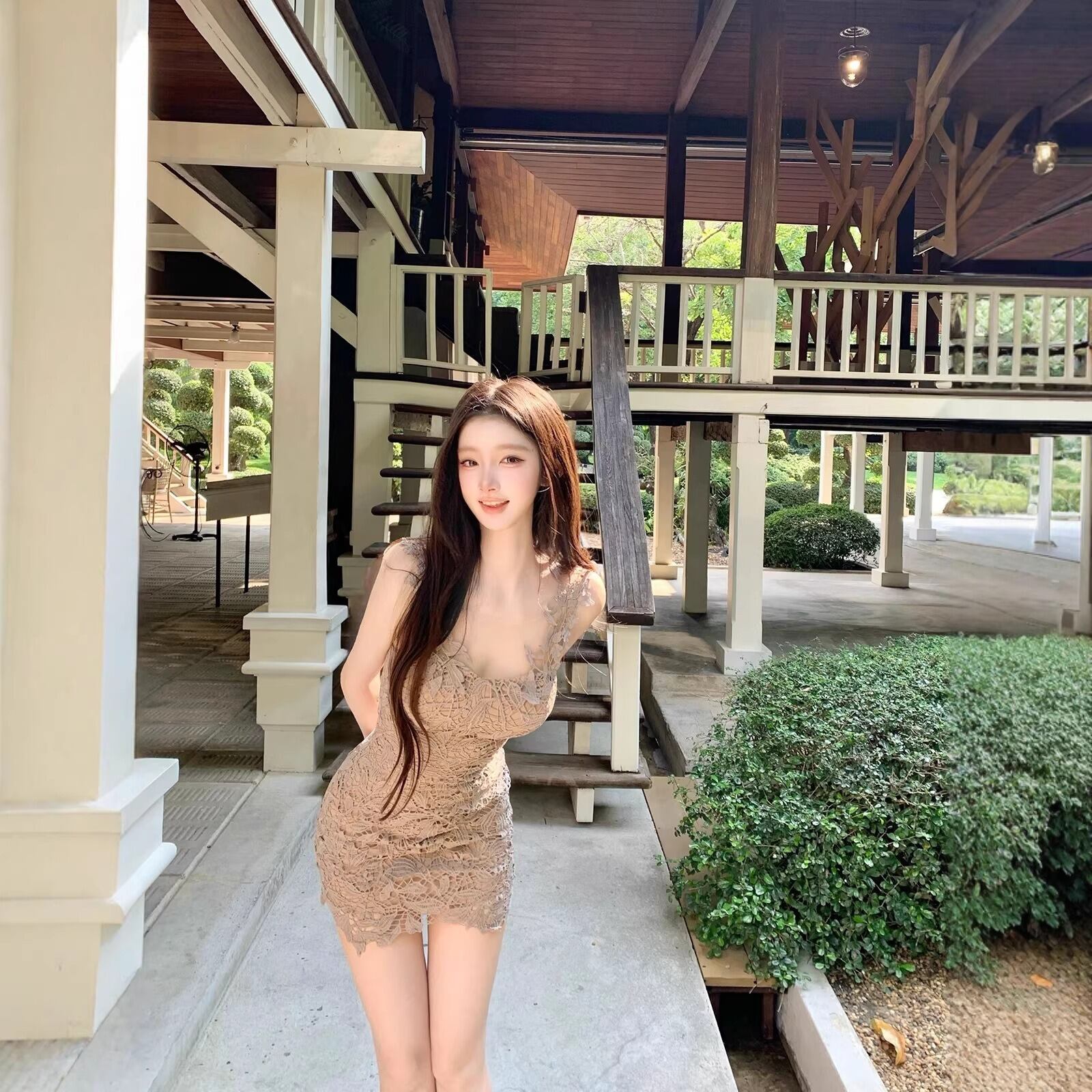 レディース レース ミニワンピース タイト ベージュ 大人可愛い デート パーティー【AR-53】